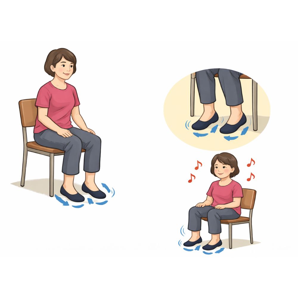 ③その状態で、踵を上下に小刻みにトントンと揺らします。